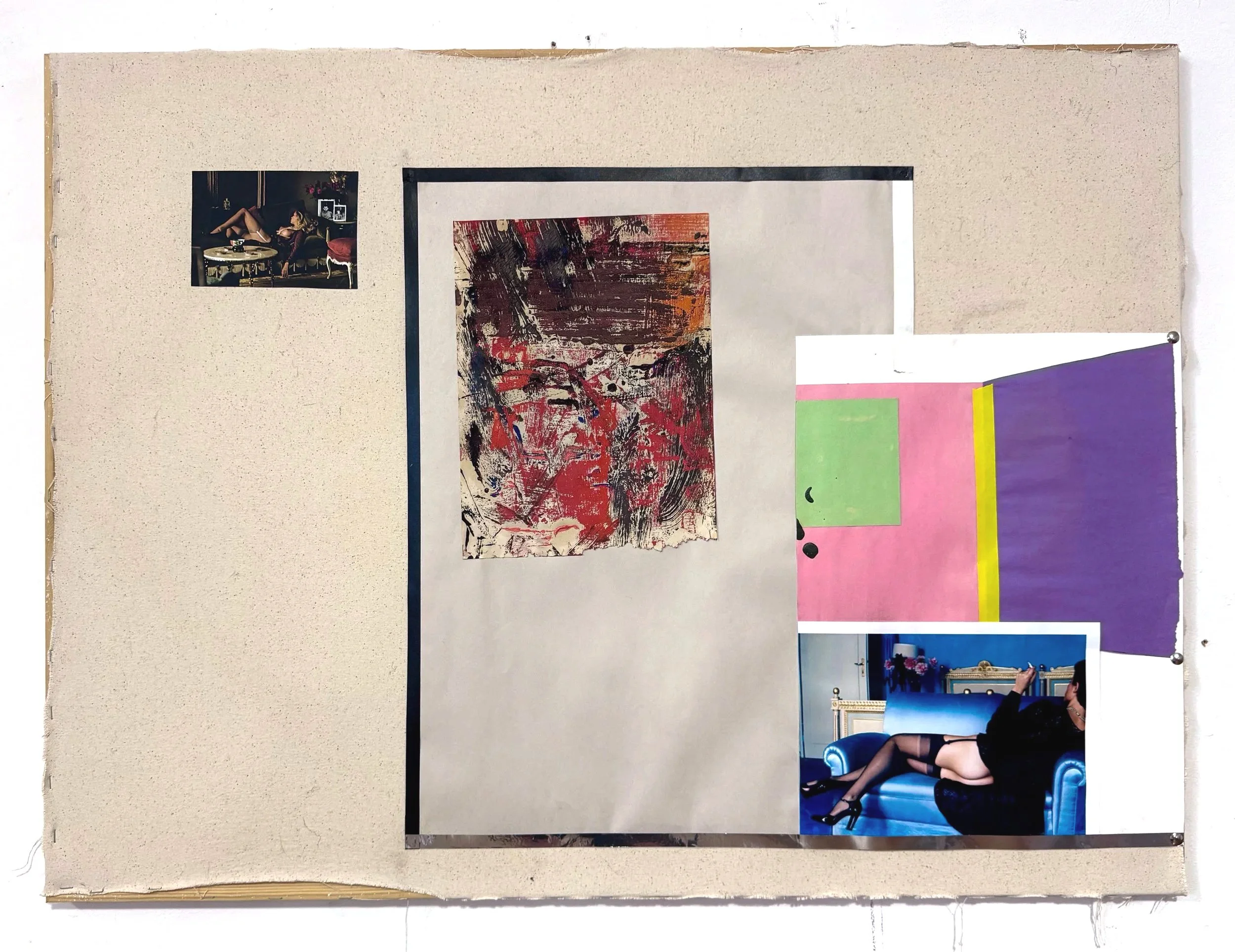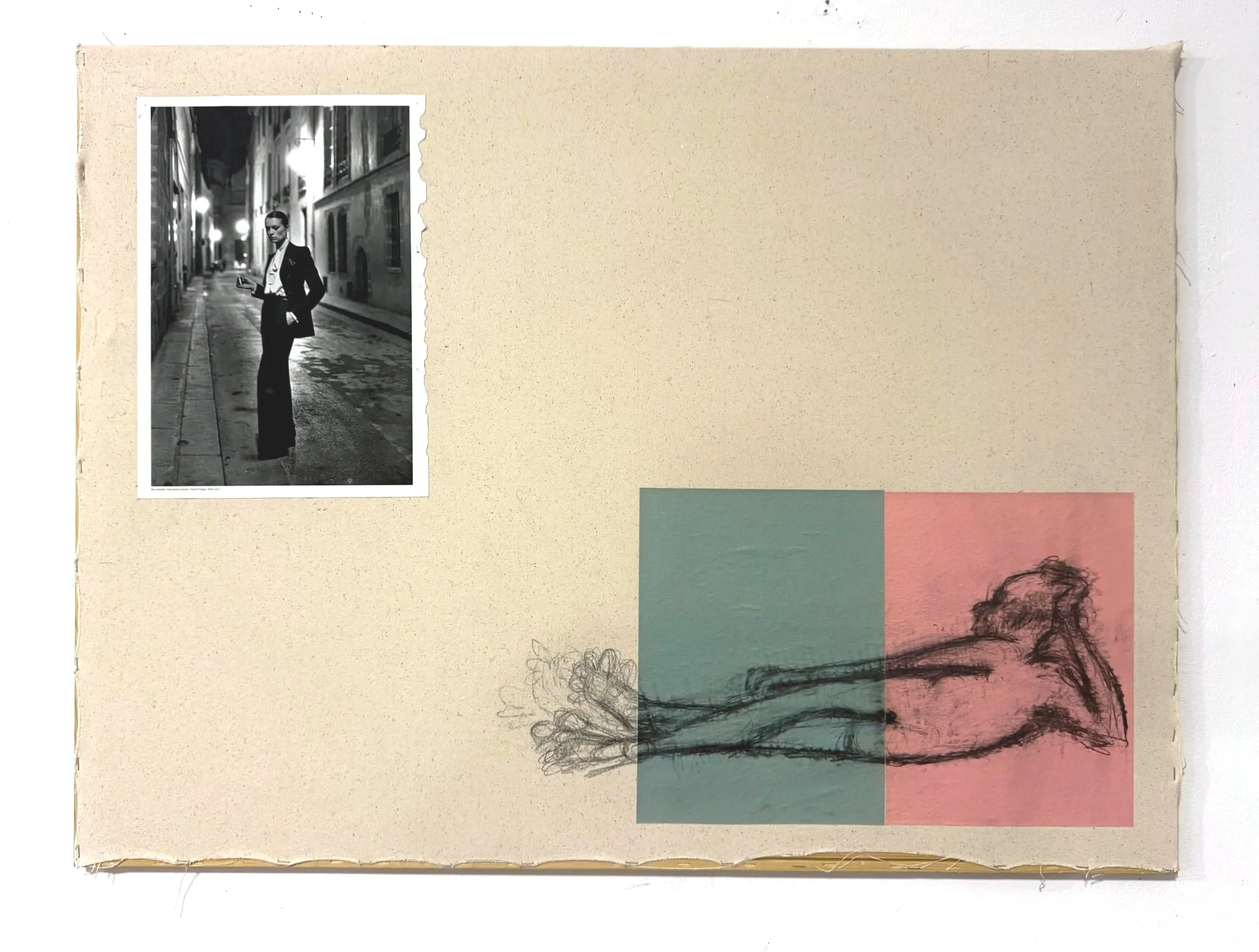 "Please Don't Go" 30"x40" graphite on construction paper, collage on canvas 2025