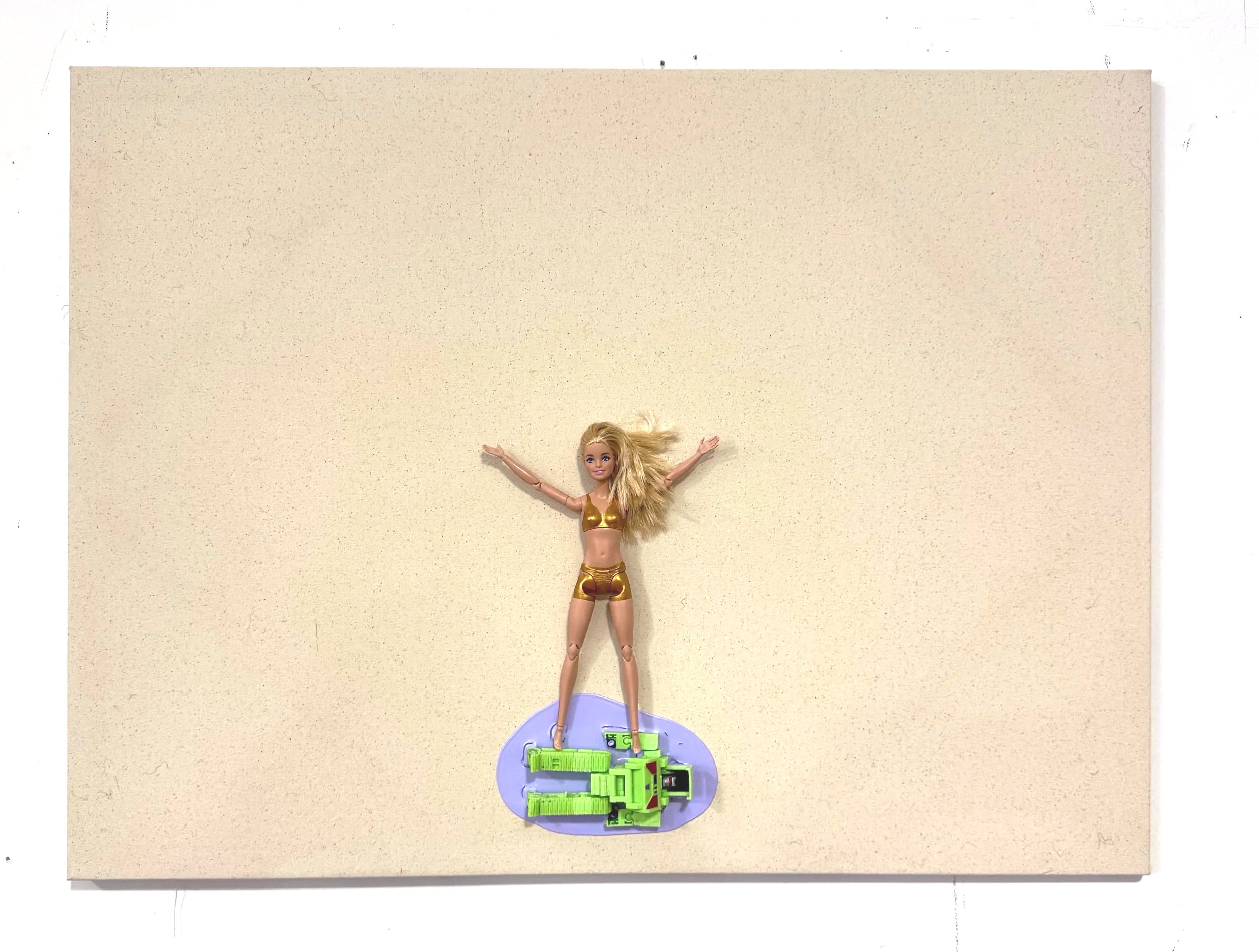 "Get it While You Can" 30"x40" toy and collage on canvas 2025